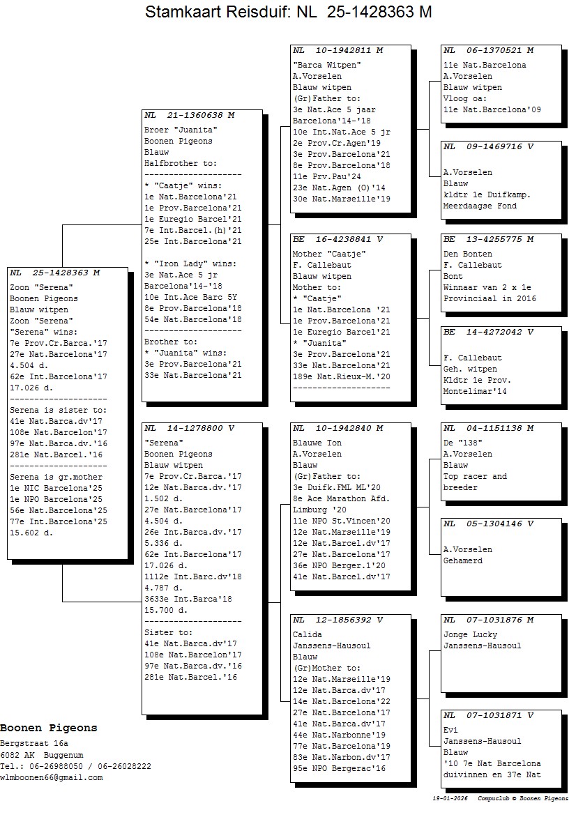 NL25-1428363 Blauw Witpen, (verm Doffer) (original: Boonen Pigeons).