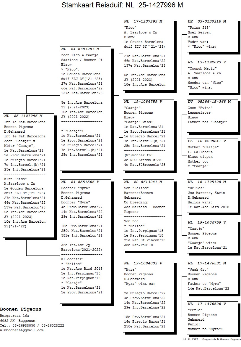 en `Nico`, 1e GOUDEN BARCELONA DUIF ZLU 3jr. (2021-2023).