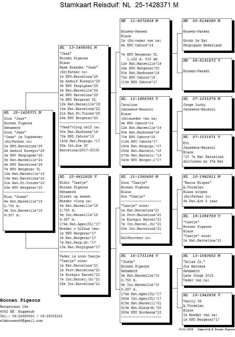 NL25-1428371 Gehamerd, (verm Doffer) (original: Boonen Pigeons).