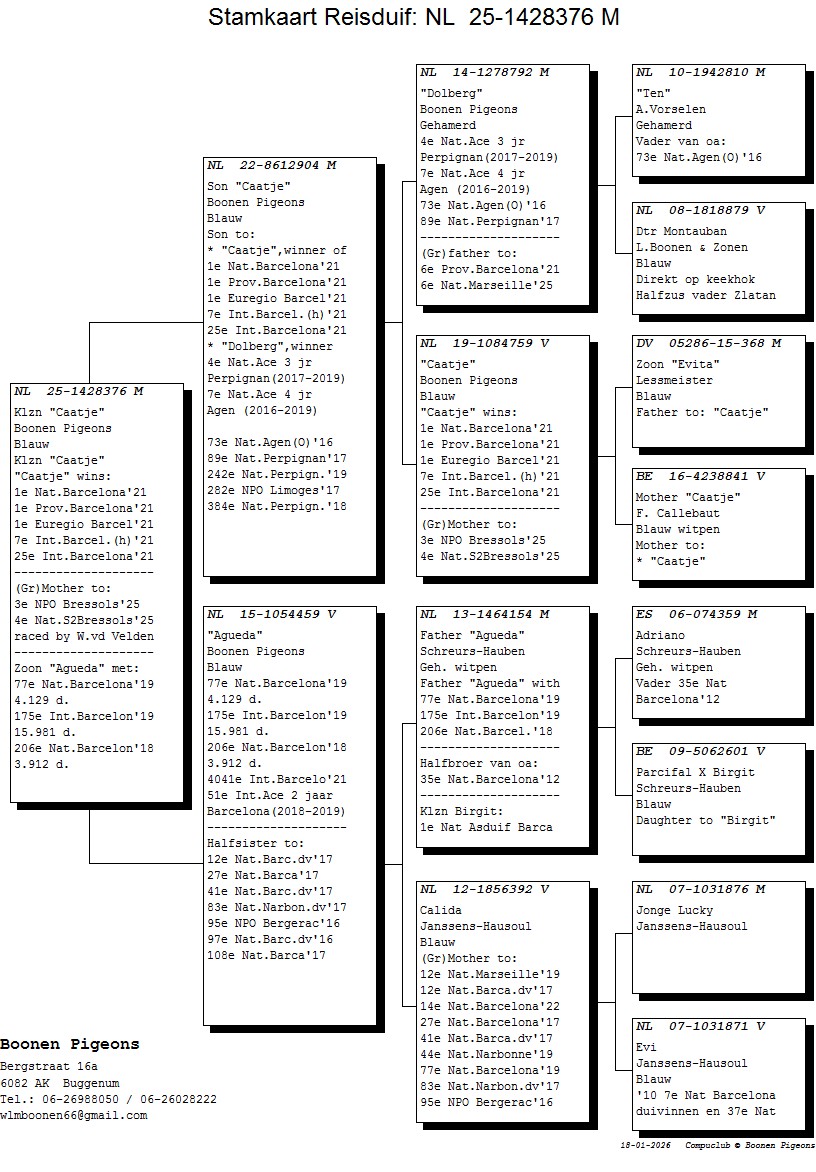 KLEINZOON `CAATJE`, 1e NAT. BARCELONA `21 x 77e Nat. Barcelona `19.