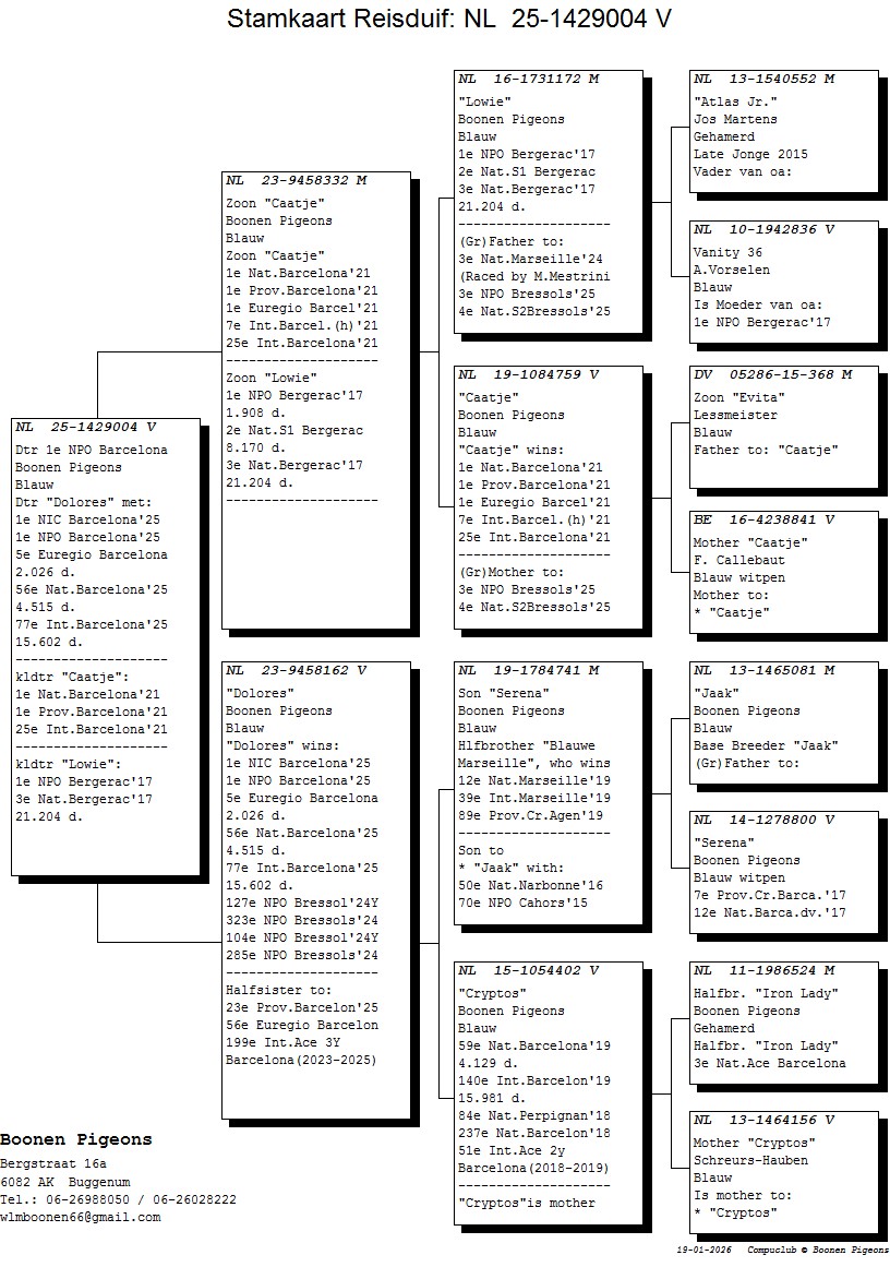 NL 25-1429004 Blauw, (verm. Duivin) (original: Boonen Pigeons).