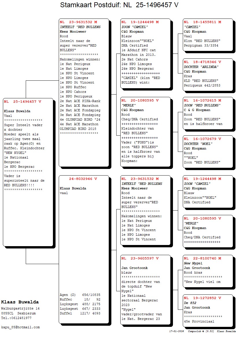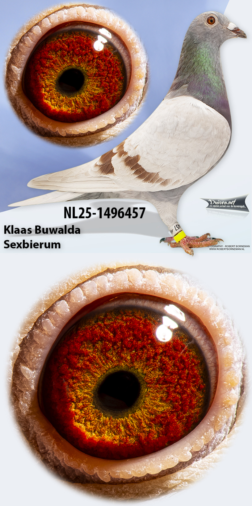 25-1496457 `VALE PRACHT`. Duivin uit een super inteelt koppeling.