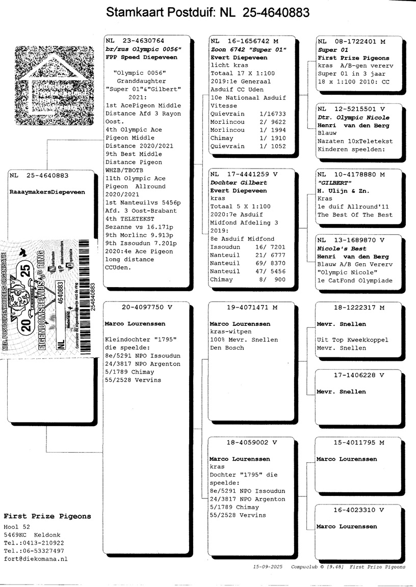 uit NL: 23-4630764 BROER `OLYMPIC 0056` X NL 4097750 M.LOURENSSEN.