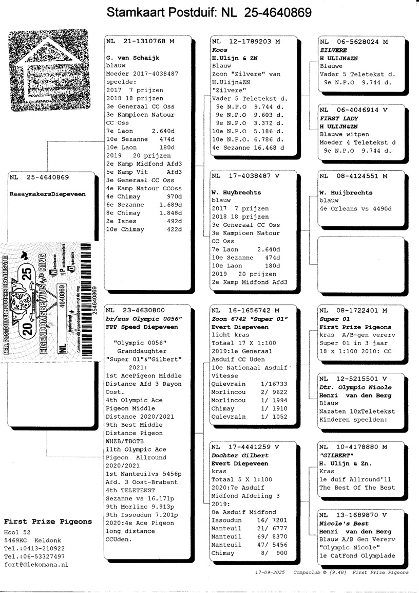 uit NL 21-1310768 G. VAN SCHAIJK EN NL 23-4630800 KLEINDOCHTER `SUPER 01` EN ZUSTER `OLYMPIC 0056`.