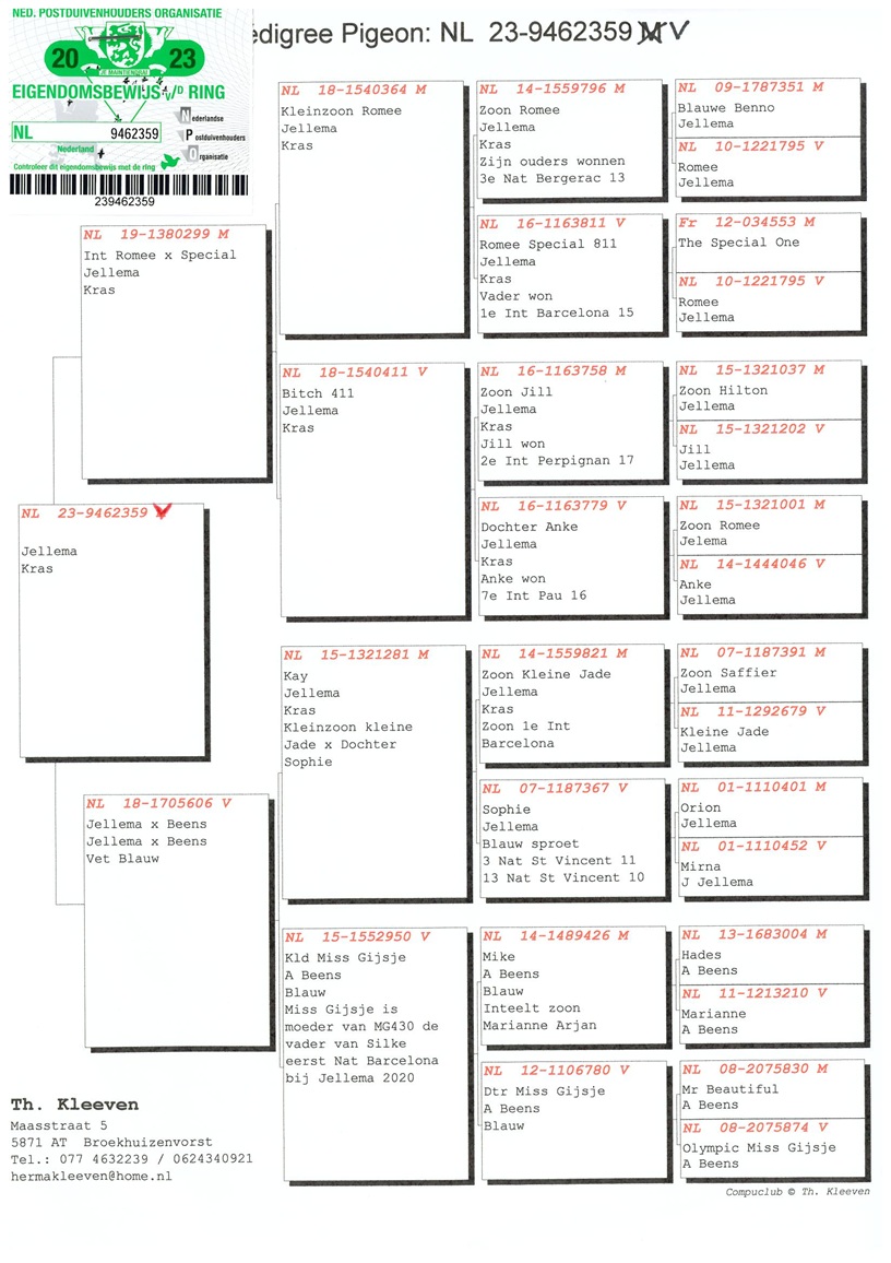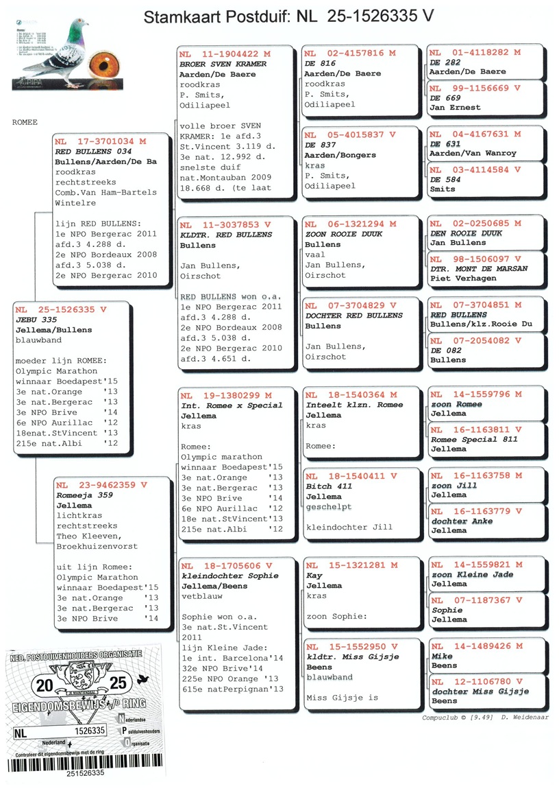 waarin we de allerbeste duiven van Jelle Jellema en de Comb. Van Ham-Bartels (ROOIE DUUK/REDBULLENS) terugvinden.