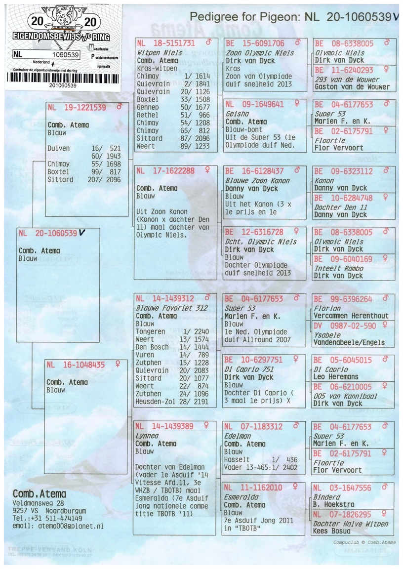 . Pracht duivin met een geweldig pedigree