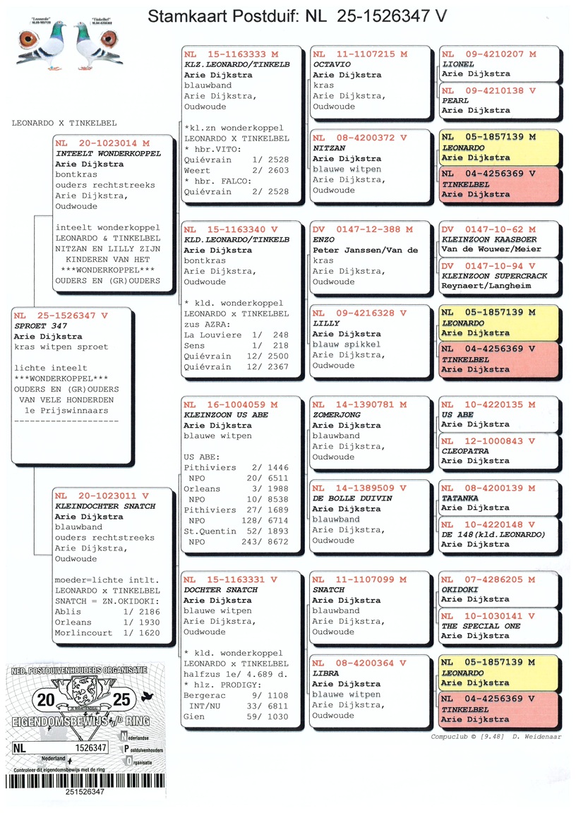 Nagenoeg alle grootouders zijn kleinkinderen van wonderkoppel LEONARDO x TINKELBEL.