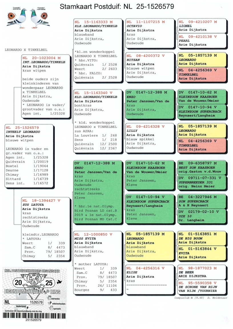 (moeder is rechtstreeks), beide uit de LEONARDO x TINKELBEL lijn.