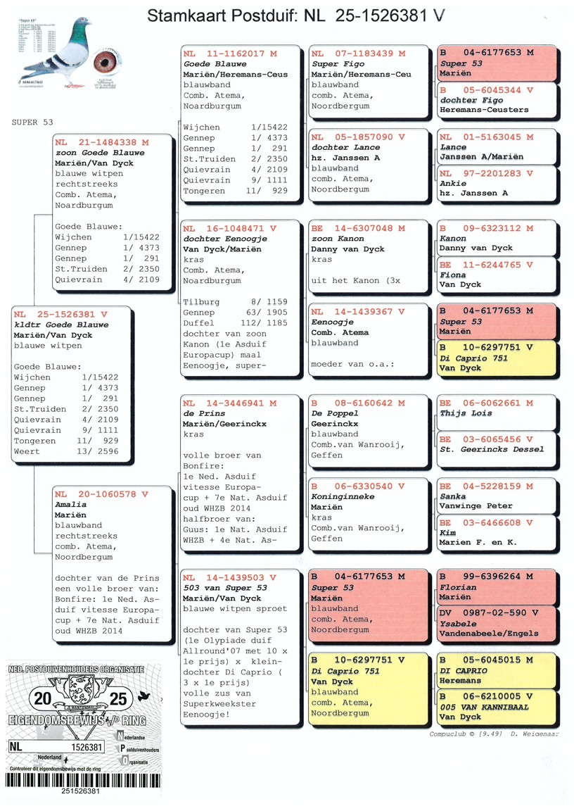 BLAUWE. Vader is ZOON GOEDE BLAUWE (o.a. 1e Wijchen 15.422 d.).