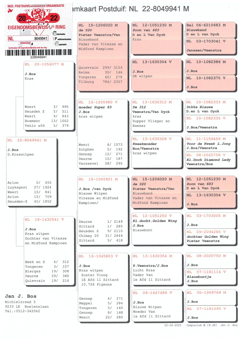 Vader van bovenstaande duif is een halfbroer van de Super 83.