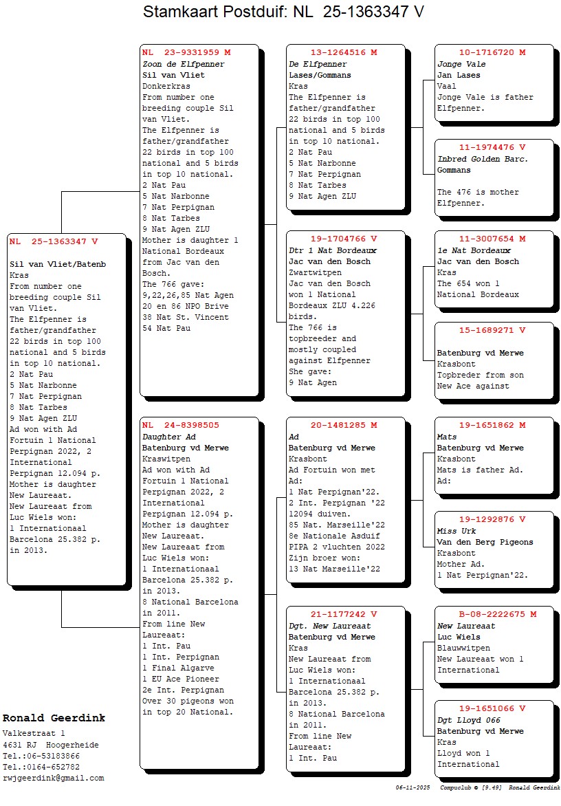 UIT ZOON ELFPENNER SIL VAN VLIET. De Elfpenner van Sil van Vliet gaf als vader/grootvader 2- 5- 7- 8- 9- 12- 12- 17- 20 Nationaal!