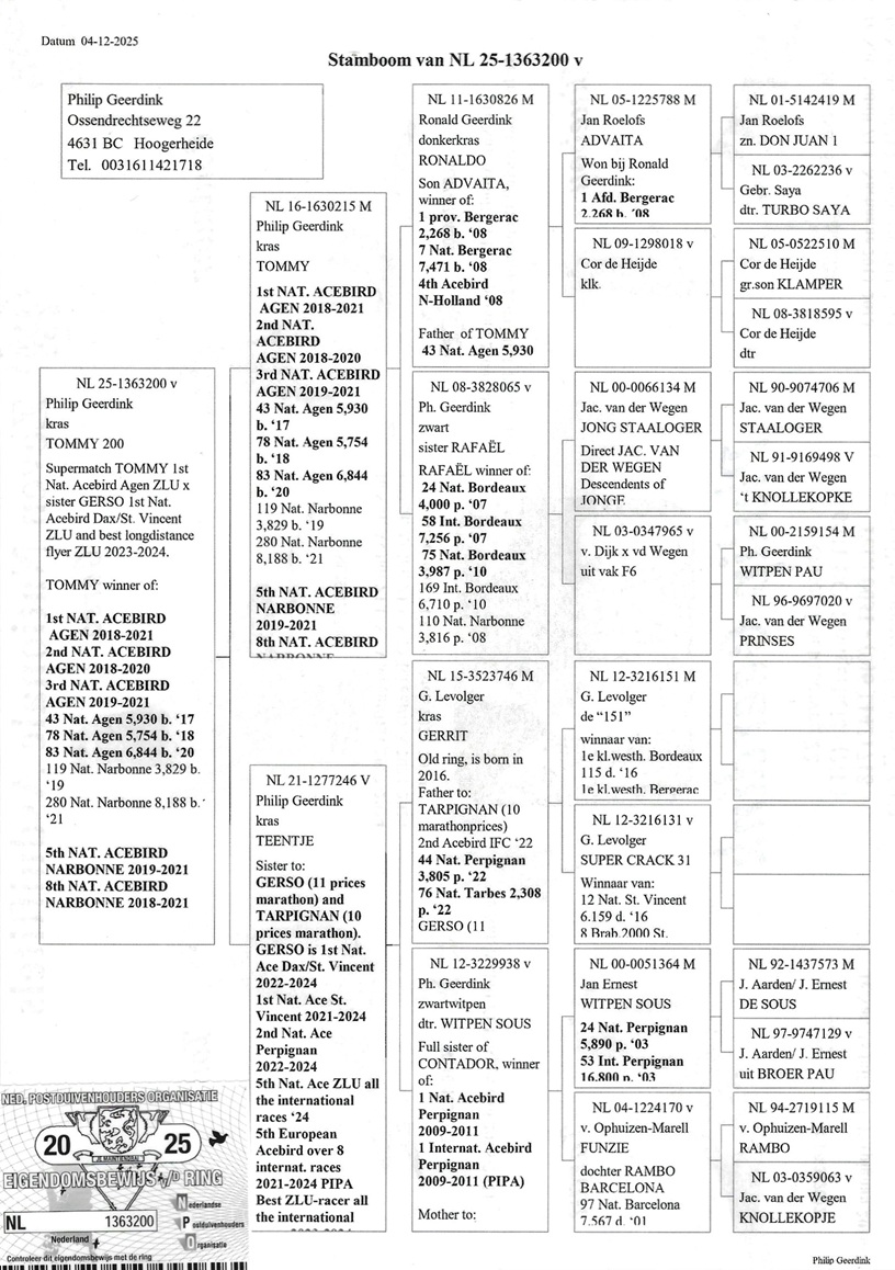 Dochter TOMMY 1e Nat. Asduif AGEN 2018-2021.