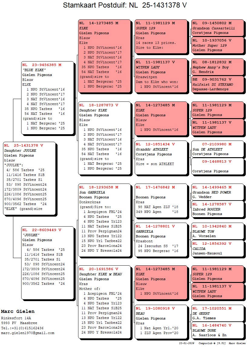 x `JUULKE` 4e NPO TARBES `25, TEVENS KLEINDOCHTER VAN `ELKE` & `BEAU`.