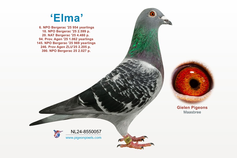 UIT `ELMA` 20e NAT. BERGERAC `25 x 22-523, HALFZUS X HALFBROER. DUBBELE KLEINDO. v. `ELKE` MET 1e & 2e NPO ST. VINCENT `16 & `17
