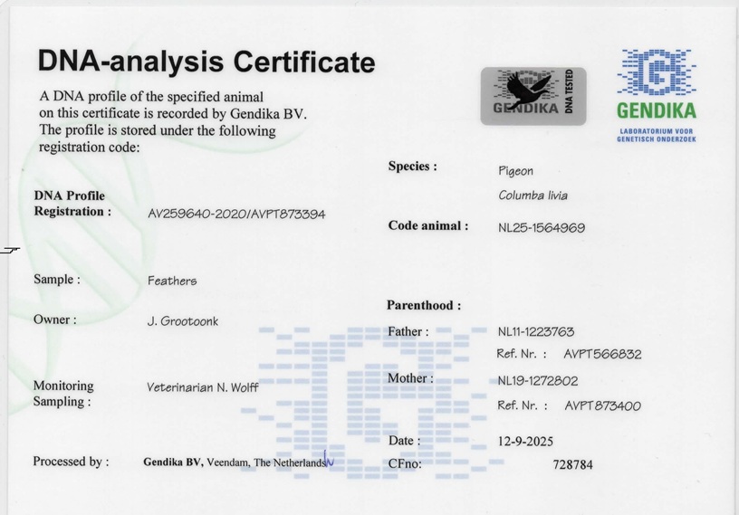 Zoon v. SUPERKWEKER NYGEL vader/gr.vader van 1e Nat. Bressol `25, 1e NPO Ruffec `25, 1e Nat. Bergerac 23