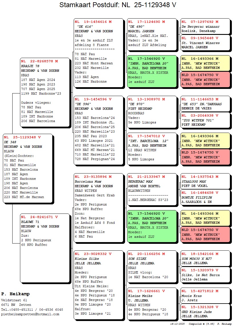 NL25-1129348 Blauwe duivin. MOEDER IS DE `BLAUWE 71`.