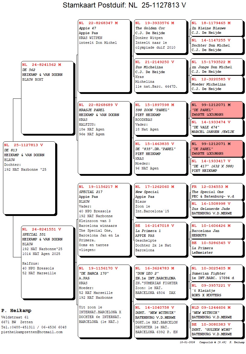 NL25-1127813 Blauwe duivin. DOCHTER 192e NAT NARBONNE.