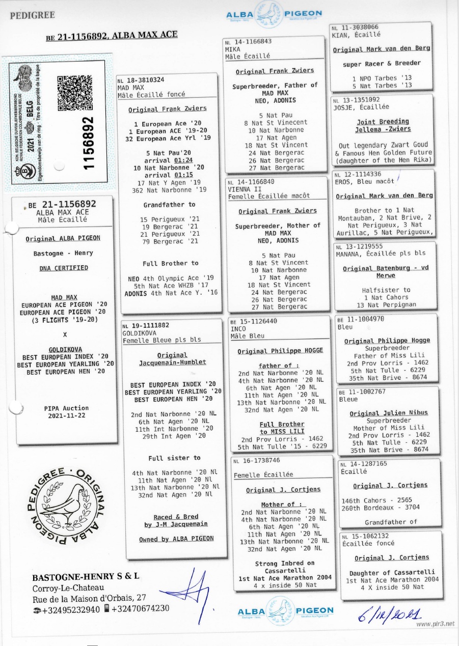 BE21-1156892 Doffer TOPAANBIEDING !!!! ZOON MAD MAX o.a. BESTE EUROPESE DUIF 2020) bij FRANK ZWIERS. MOEDER IS GOLDIKOVA` BESTE EUROPESE JAARLING 2020.