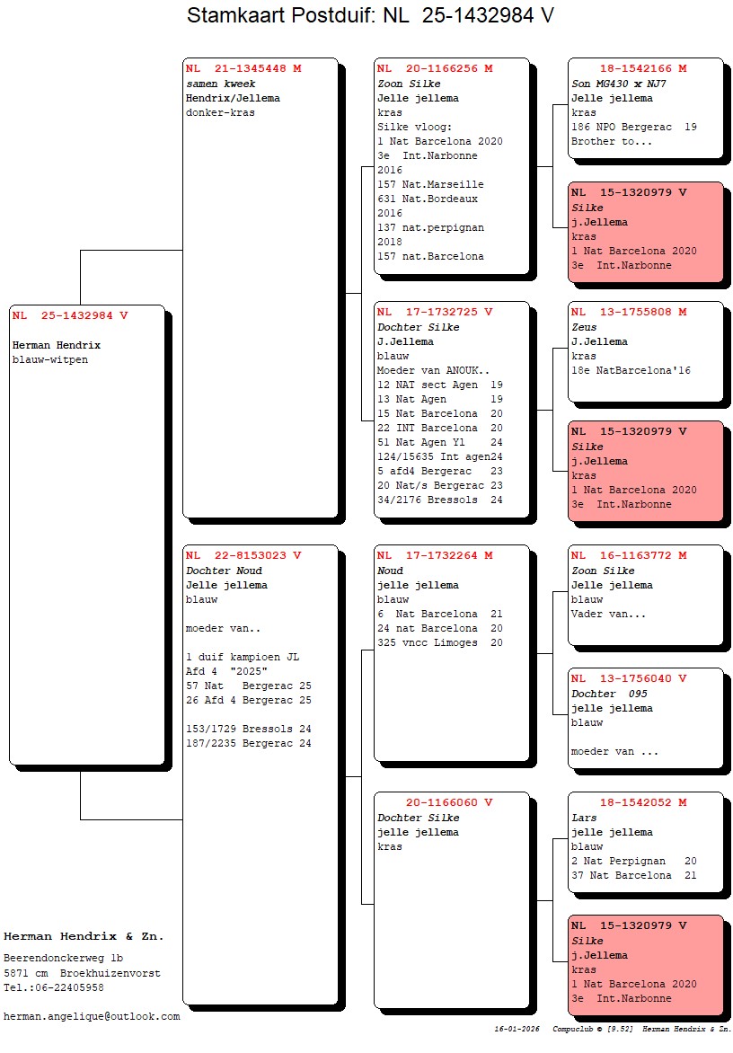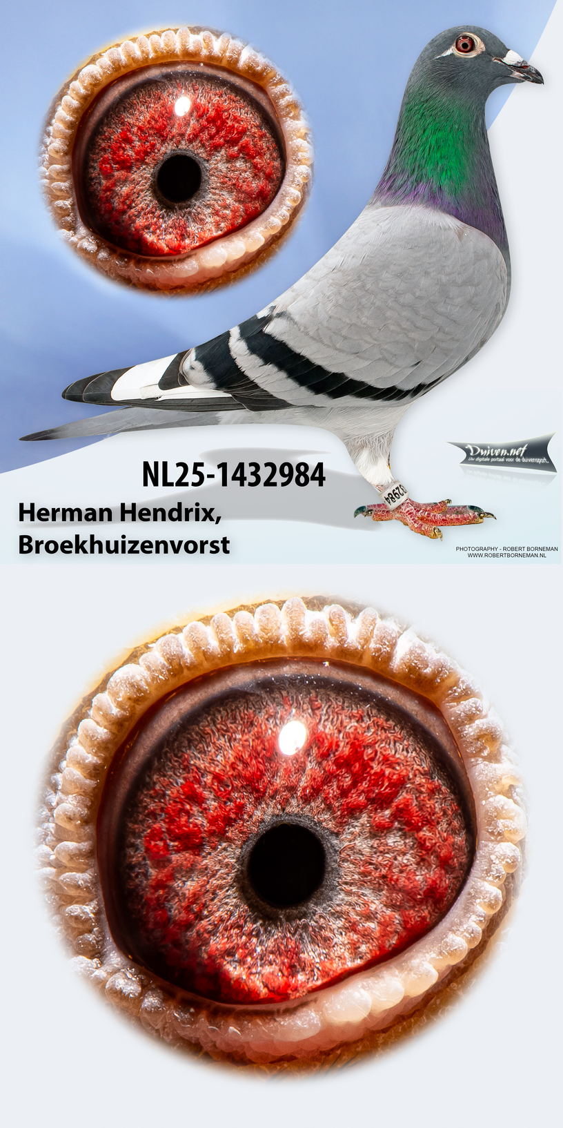 NL25-1432984 Blauw-witpen Duivin. Kleindochter.