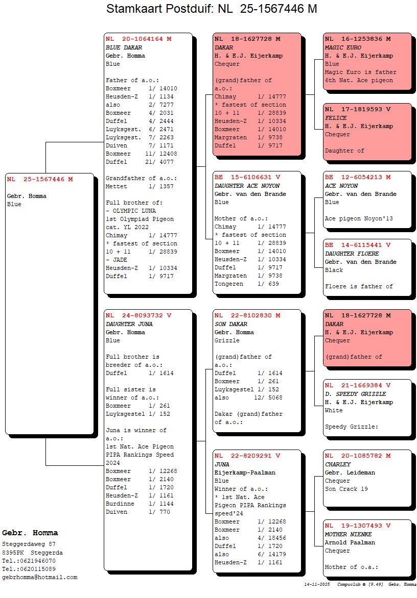 DAKAR` (beste kwekende zoon stamkoppel `Dakar` x dochter `Ace Noyon`) x `DOCHTER