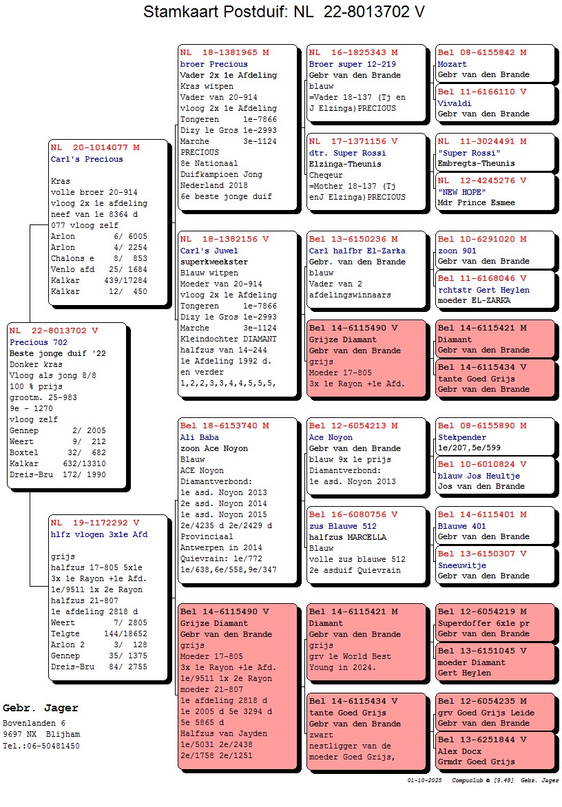PRECIOUS 702. BESTE JONGE DUIF VAN 2022.