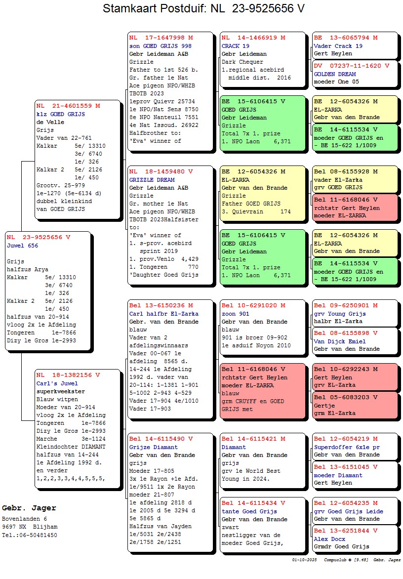 NL23-9525656 Grijs Duivin. JUWEL 656 .