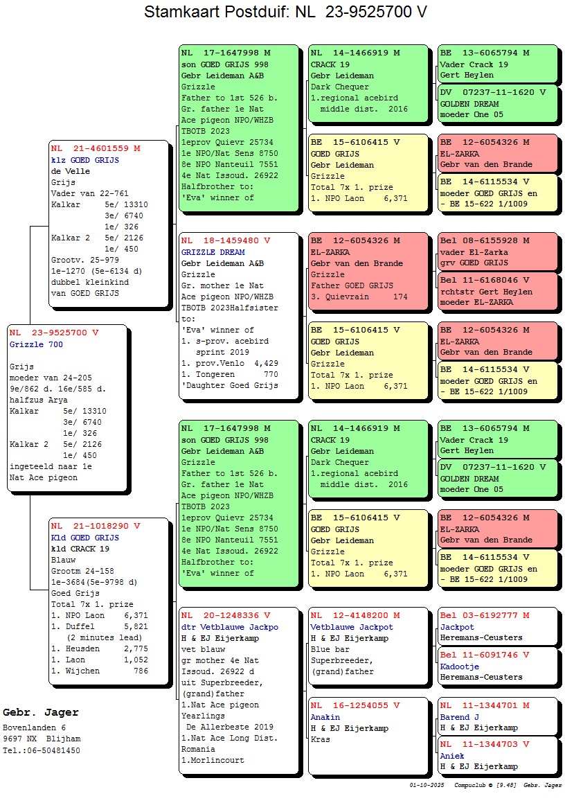 NL23-9525700 Grijs Duivin. GRIZZLE 700 .