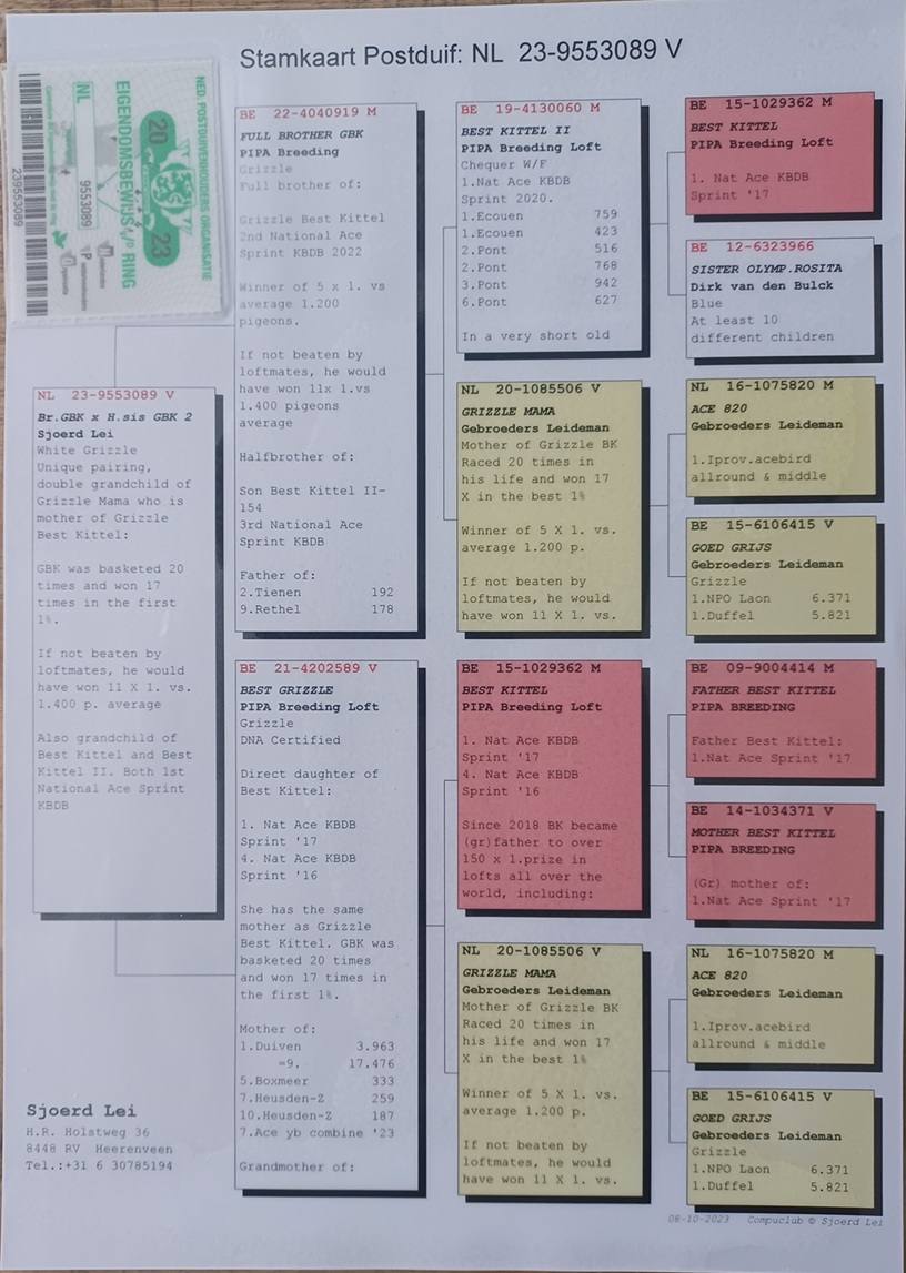 NL23-9553089 Grijs Duivin. SUPER MAMA . Via Sjoerd Lei , prachtige duivin