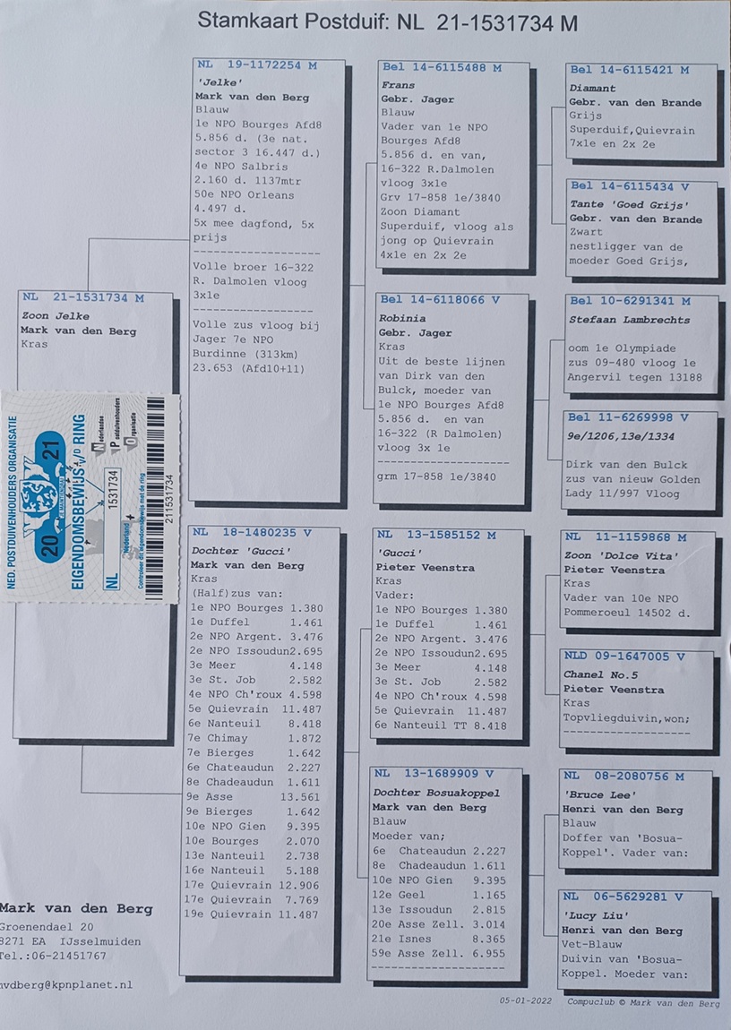 V.D. BERG GEKREGEN UIT SUPERDUIF JELKE, deze doffer afkomstig van ons