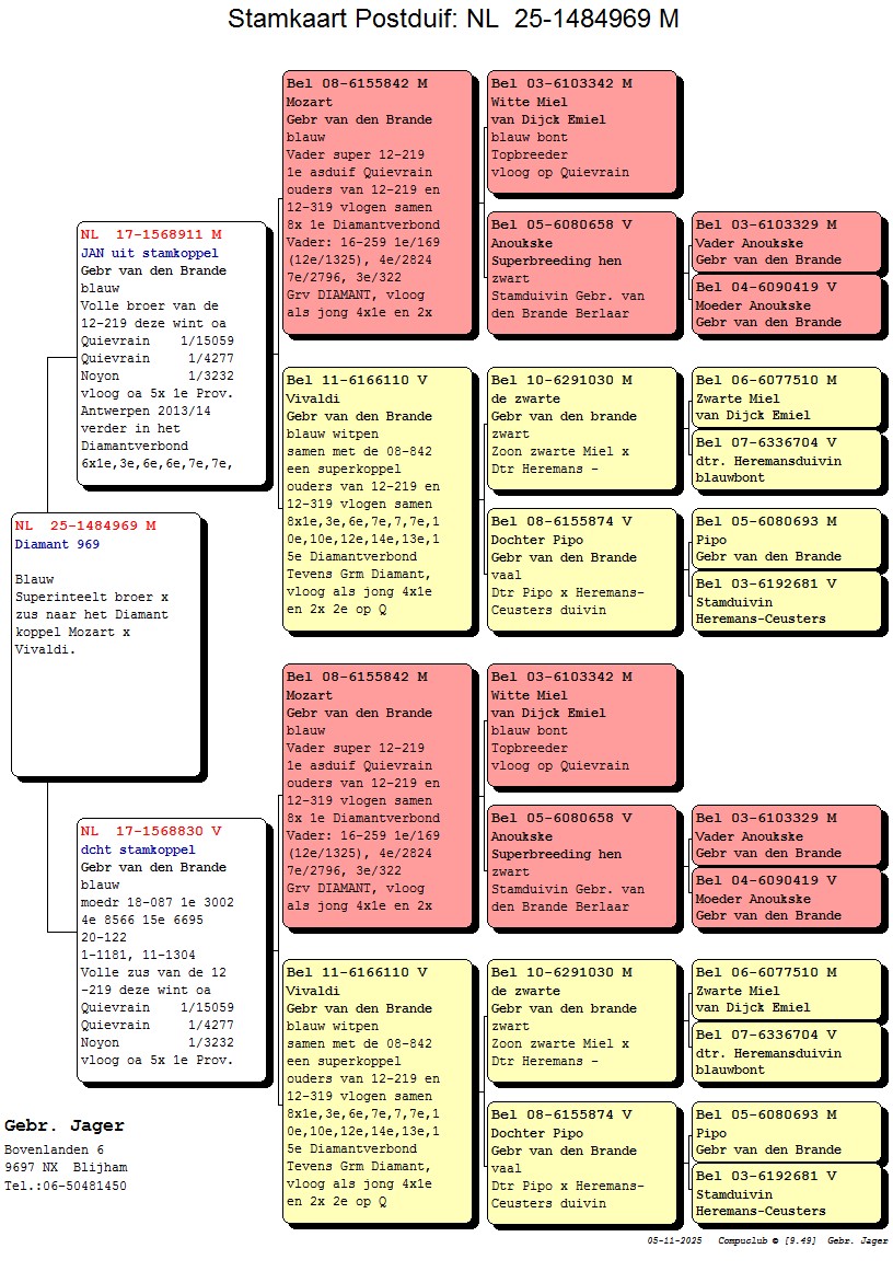 NL25-1484969 Blauw Doffer. SUPERINTEELT BROER X ZUS NAAR HET DIAMANT KOPPEL MOZART X VIVALDI. Een van de laatste jongen nog zo dicht op het absolute stamkoppel.