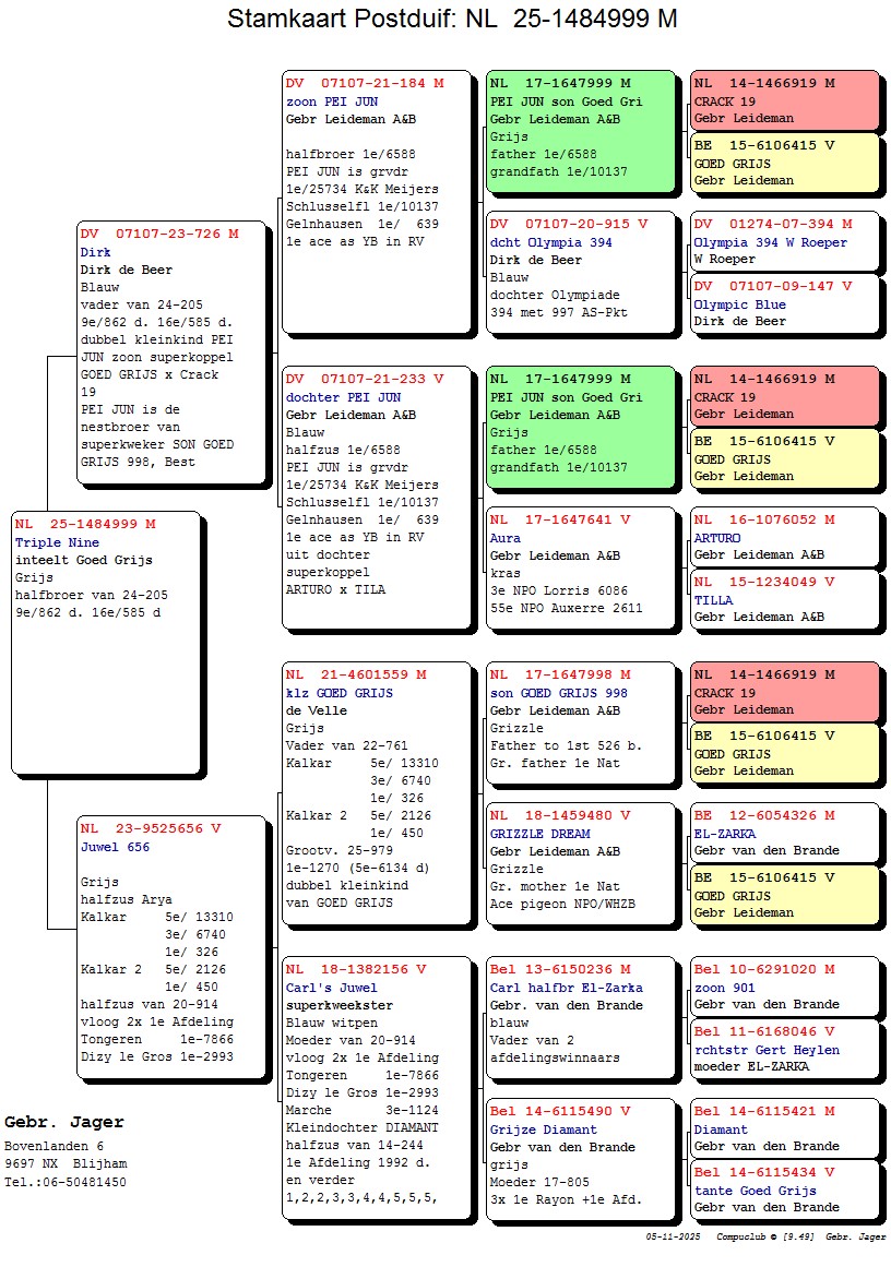 NL25-1484999 Grijs Doffer. halfbroer van 24-205 vloog 9e/862 d. 16e/585 d. STERK INGETEELDE DUIF NAAR HET GOED GRIJS X HET SUPERKOPPEL ARTURO X TILLA van Gebr. Leideman.