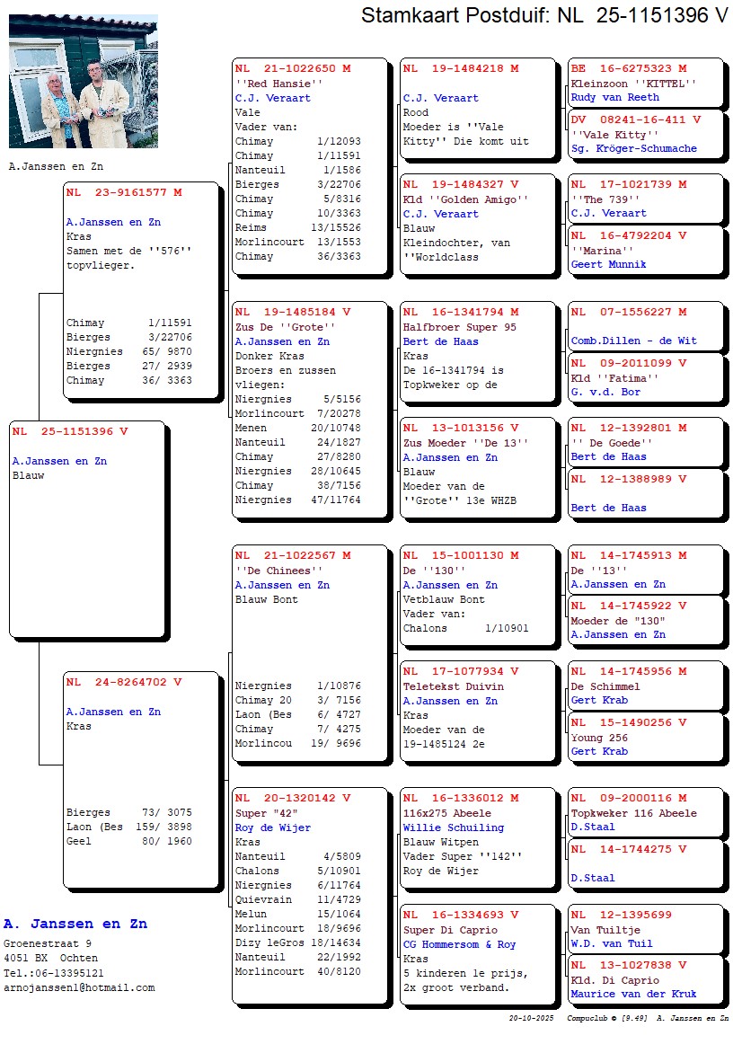 MOEDERS IS DO. DE `CHINEES`. Chinees` was beste duif vitesse/midfond van de hele Afd. 8 in 2023.