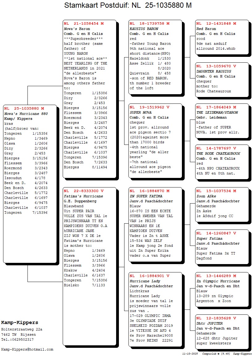 UIT ONZE 5 STERREN KWEKER NOVA`S BARON gekruist met een geweldige topduivin uit het Super pair van Geurt Doppenberg.