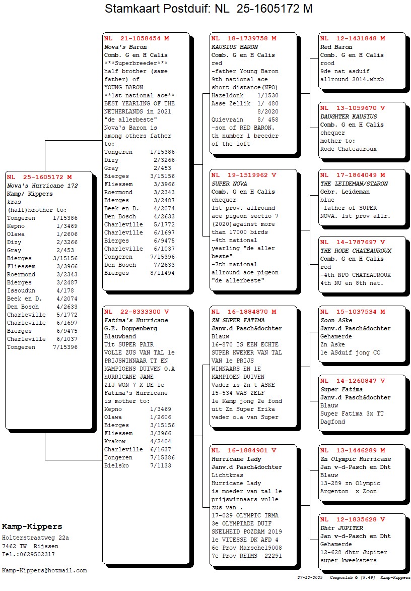 UIT ONZE 5 STERREN KWEKER NOVA`S BARON gekruist met een geweldige topduivin UIT HET SUPER PAIR v. GEURT DOPPENBERG.