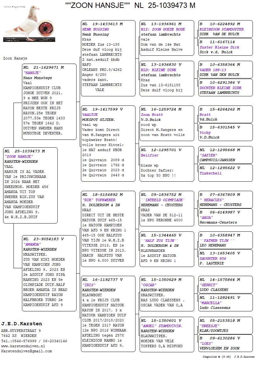 VADER 671 VIA HANS MUNSTEGE UIT DEVENTER. MOEDER IS DO. v. TOP KWEKER `RIK`