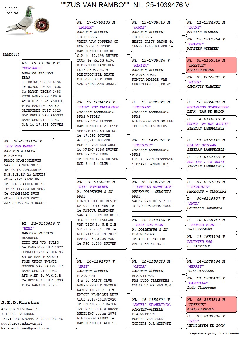 Het zelfde type als haar broer `RAMBO` 1e KAMP.DUIF