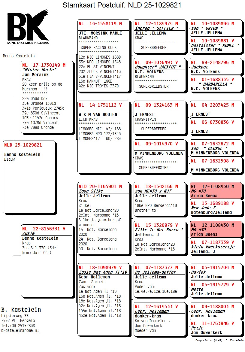 VADER IS MISTER MARLE (Jan Morsink) 20 X PRIJS OP EEN MARATHONVLUCHT. MOEDER IS ZUSJE, DOCHTER v. SIL330 EN ZWARTE COBRA.