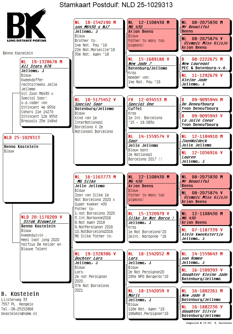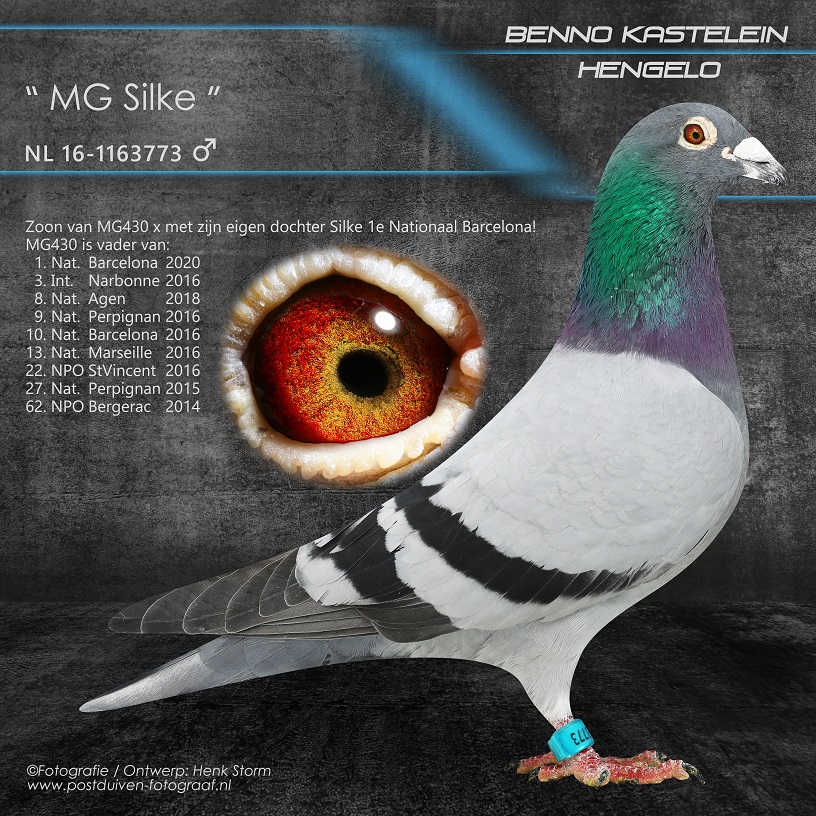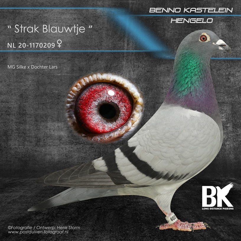 MOEDER IS STRAK BLAUWTJE, kweekduivin uit topkweker MG Silke x een dochter van Lars.