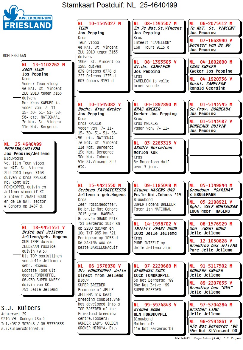 uit een rechtstr. Jos Pepping kweker lijn Teun vloog 4e NAT. St. Vincent ZLU `10 tegen 3163 d.