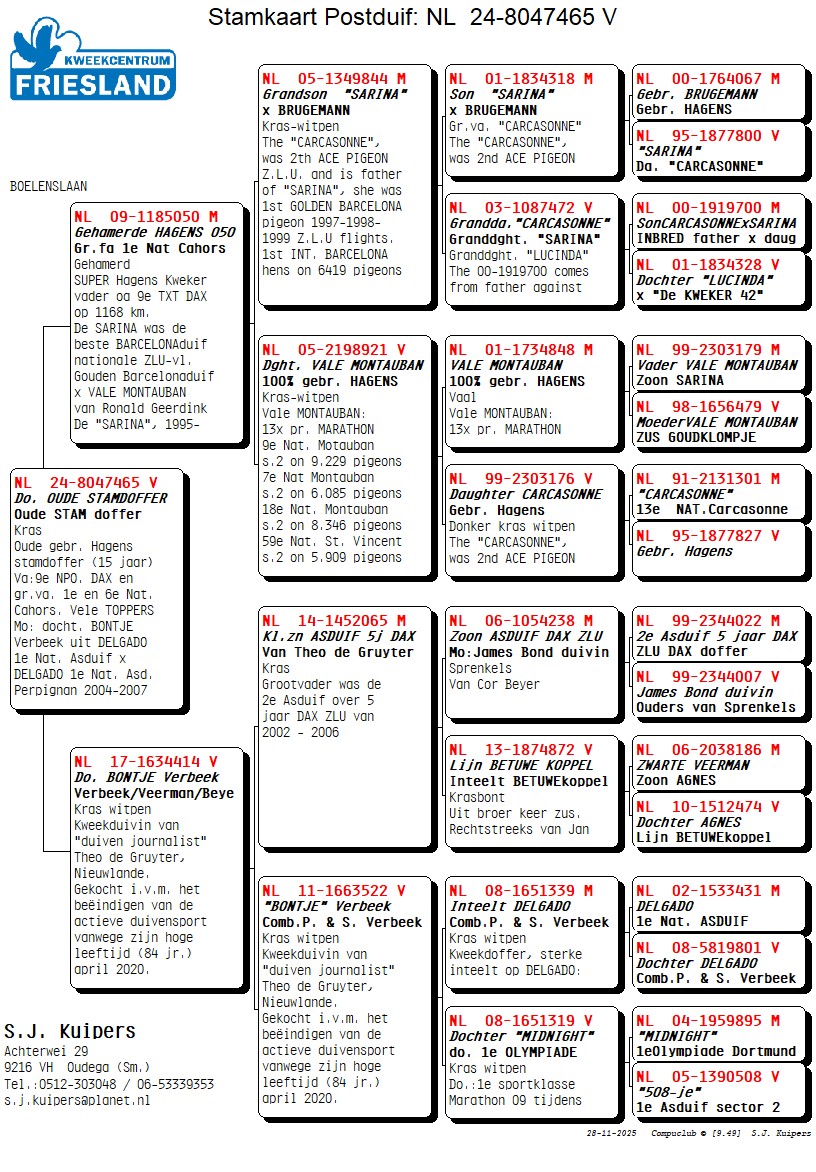 Ze is een halfbr. van `Pareltje Hagens` 9e TXT Dax 1168 km afd. Friesland `96.