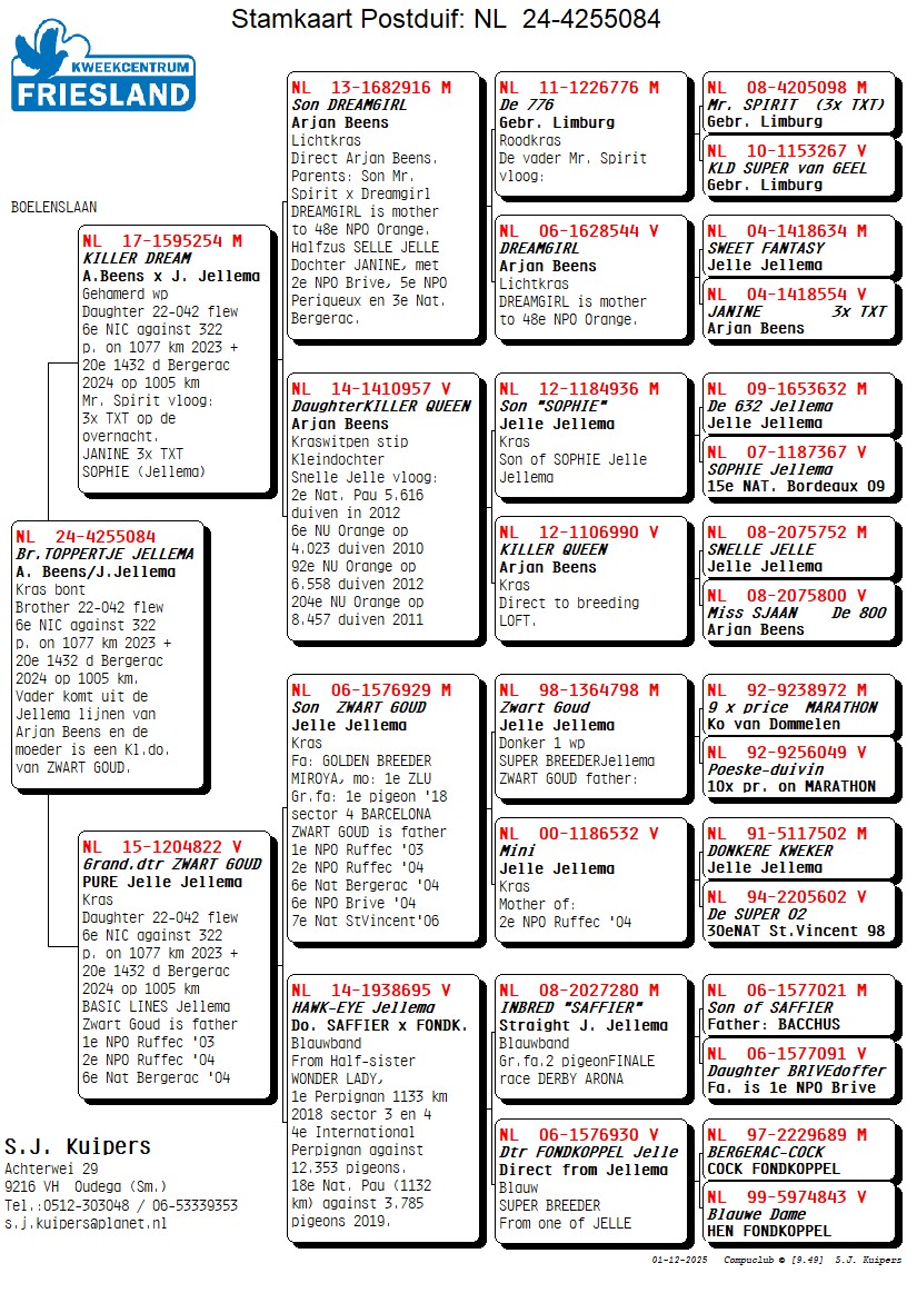Van vaderskant uit lijn SNELLE JELLE, Mr. Spirit (gebr. Limburg) vloog 3x TXT op de overnacht