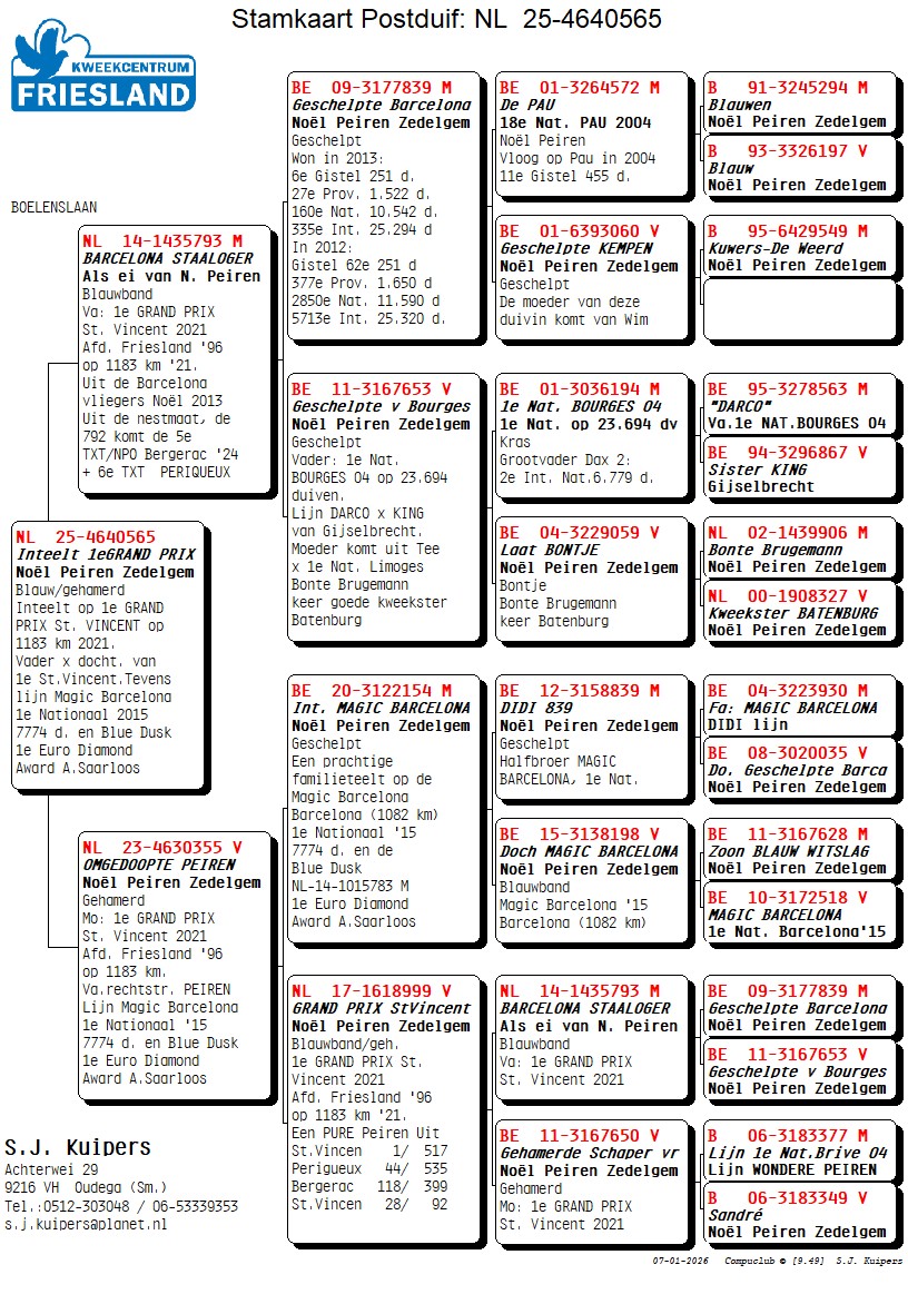 HIJ IS EEN HALFBROER VAN DE 1e GRAND PRIX ST. VINCENT 2021 AFD. FRIESLAND `96 op 1183 km.