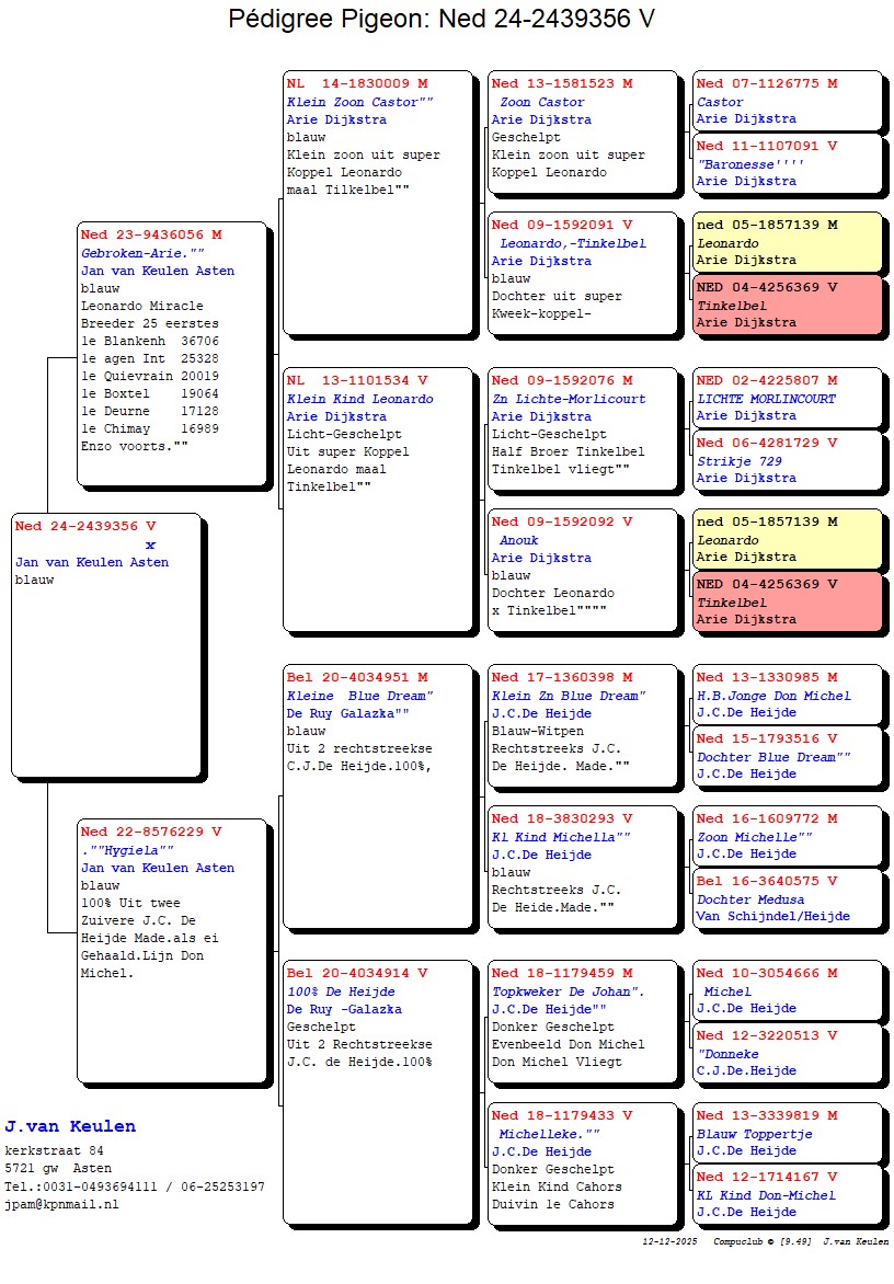 24-2439356 HALFZUS KOOP 4. Prachtige blauwe duivin met een geweldige afstamming: