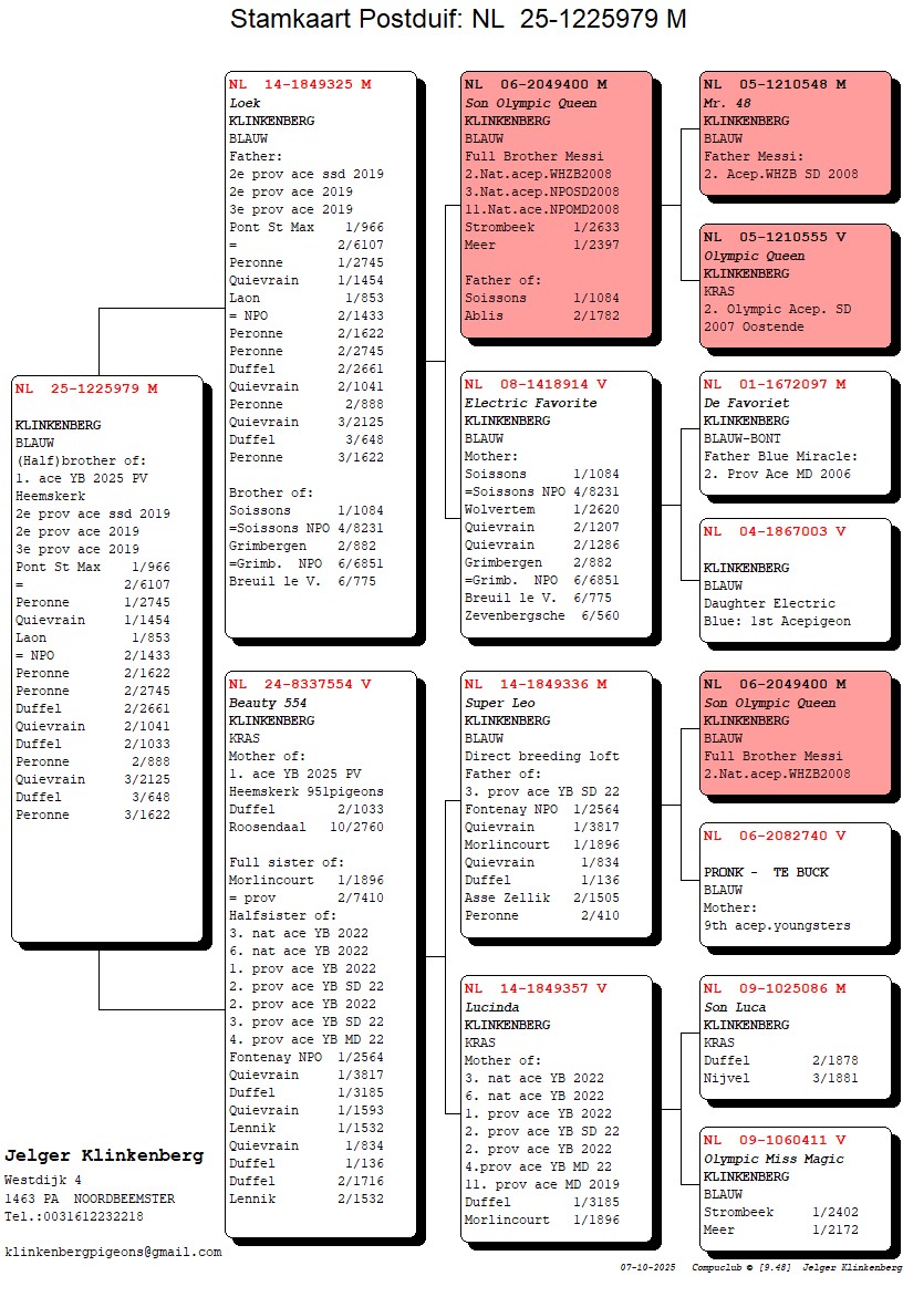 Zoon LOEK (2e prov asduif supervitesse) x BEAUTY 554 (MOEDER 1e Asduif Jong Vitesse PV Heemskerk 2025).