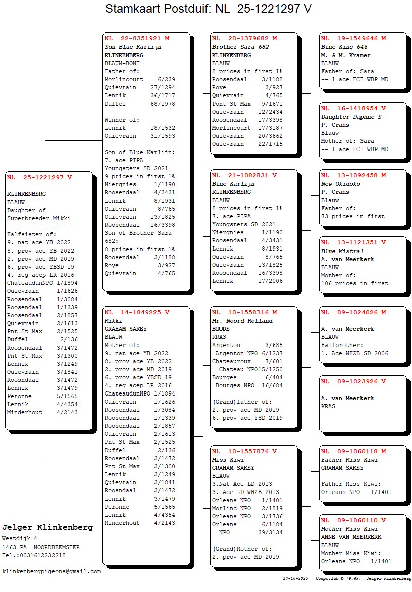 NL25-1221297 Blauw Duivin. DOCHTER ZOON BLUE KARLIJN X MIKKI.