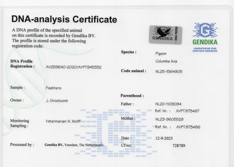 NL25-1564905 Rood Kras doffer. ZOON VAN NYCK (VOLLE BROER VAN NEW NYGEL 1e Nat. BERGERAC 2023) X DOCHTER NYGEL. KOPPELING HALFBROER HALFZUS. BEIDE KOMEN ZE UIT SUPERKWEKER NYGEL.