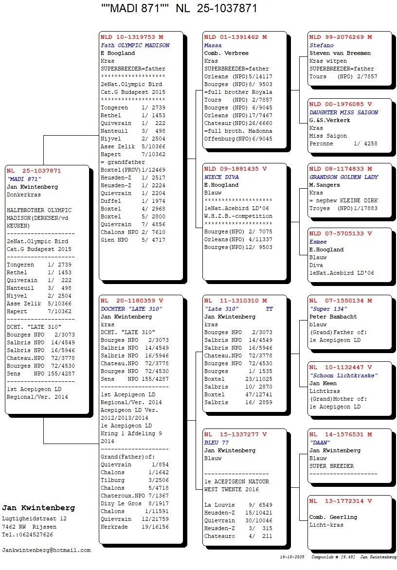 Derksen v/d Keuken. Prachtige duivin (dagfondtype).