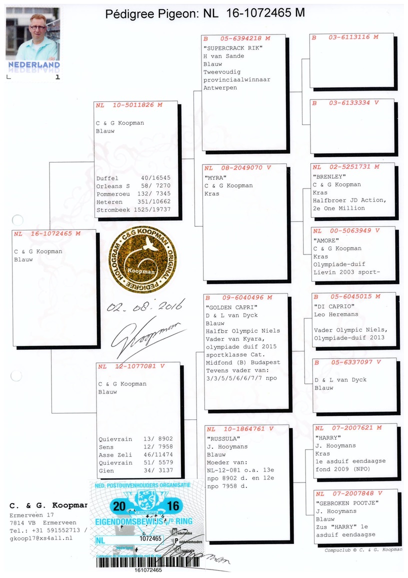 Bijzondere aanbieding. Zowel bij de vader als de moeder meerdere gouden namen: DI CAPRIO (wereldberoemde Leo Heremans kweker).