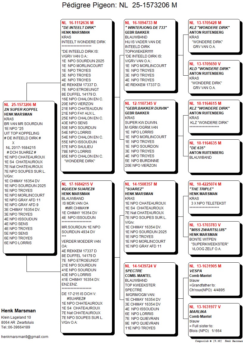 Uit top kweekkoppel DE INTEELD DIRK` VADER - GRV. v. 1e NPO MORLINCOURT, 1e NPO TROYES,