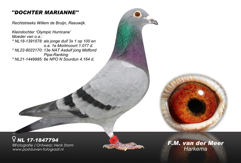 VADER IS EEN VOLLE BROER NL22-8022170: 3e NAT. ASDUIF JONG FONDSPIEGEL. MOEDER IS EEN VOLLE ZUSTER VAN `OLYMPIC FEMKE`.